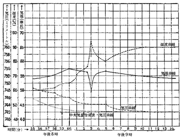 そのため湿度は急上昇、気温は急下降。